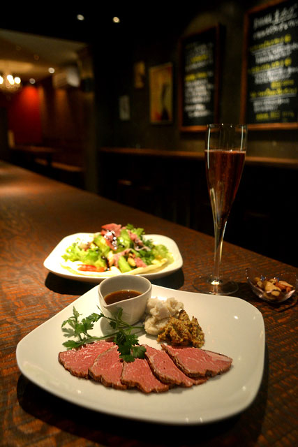 サラダやローストビーフ、ピザなどのお食事もできます。