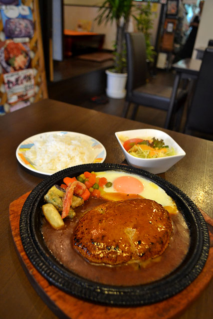 秘伝のデミグラスソースが決め手の鹿児島産和牛・黒豚ハンバーグステーキが自慢。