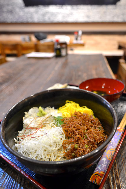 日本有数の魚場・東シナ海いちき沖で獲れるちりめん、しらすを使った名物「しらす丼」をメインに、海鮮物を主としたメニューをご準備しています。